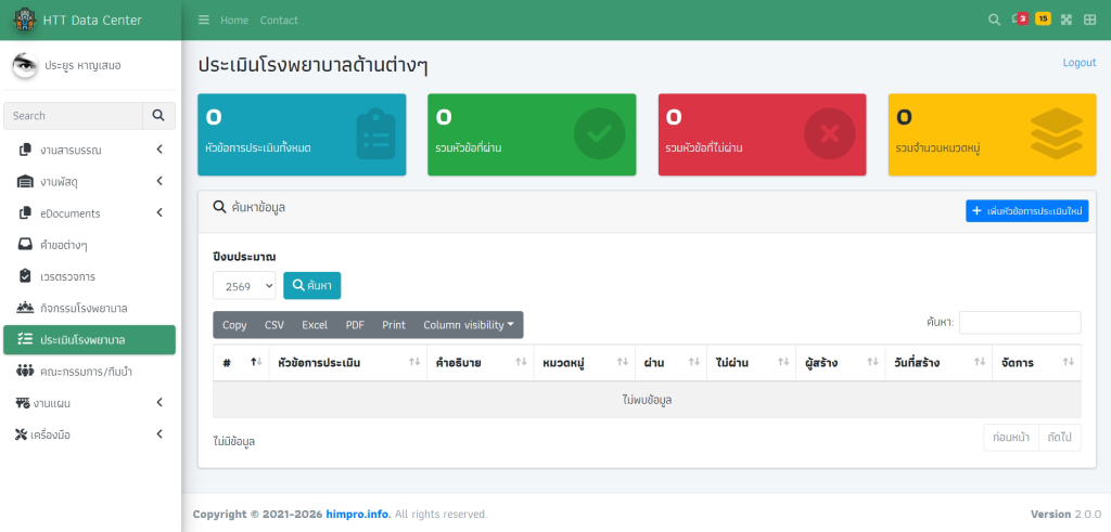 ระบบเก็บข้อมูลการประเมินโรงพยาบาล มีไว้สำหรับเก็บข้อมูลว่าแต่ละปี โรงพยาบาลประเมินเรื่องอะไรไปบ้าง และมีผลเป็นอย่างไร และมีเอกสารที่เกี่ยวข้องอะไรบ้าง เพื่อให้ง่ายต่อการตรวจสอบและการดำเนินการประเมินในปีถัดไป