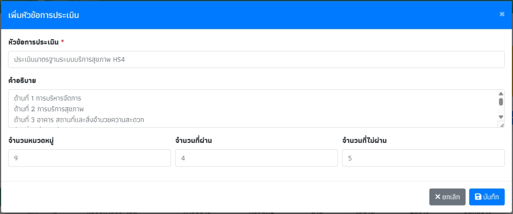 คลิกปุ่ม “เพิ่มหัวข้อการประเมินใหม่”